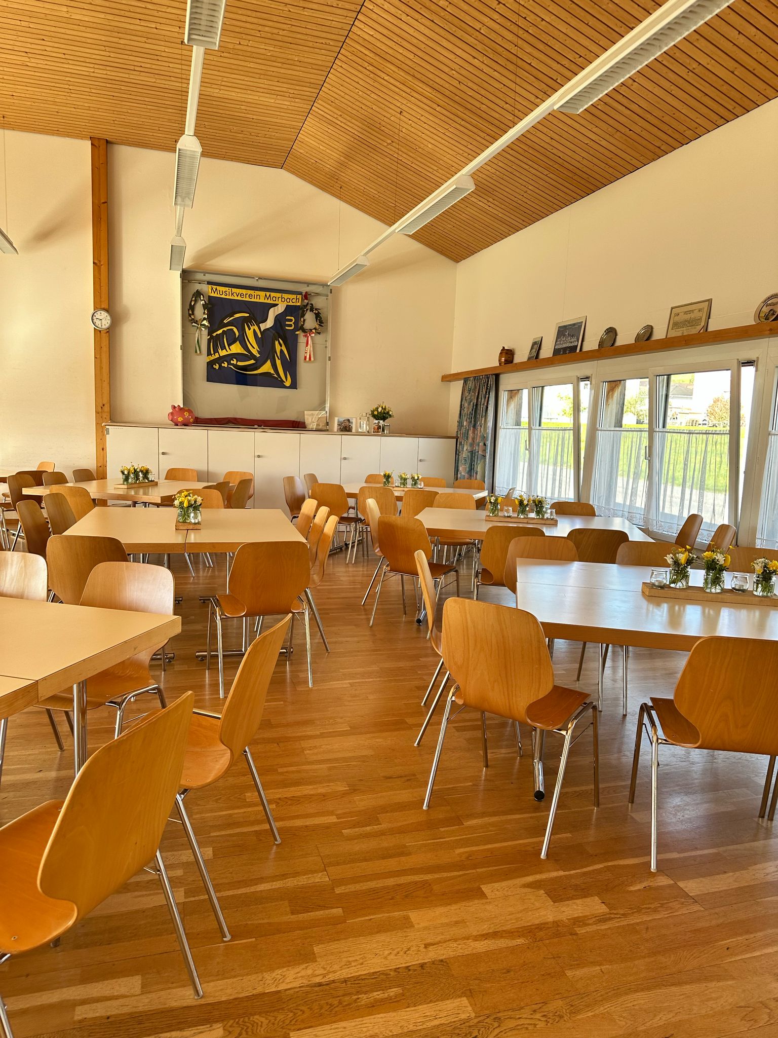 Zudem ist es möglich, den grossen Saal und die Küche für private Zwecke wie z.B. Geburtstagsfeier, Hochzeit, Jubiläum oder andere Festaktivitäten zu mieten. Auskünfte sind unter info@musikvereinmarbach.ch erhältlich.